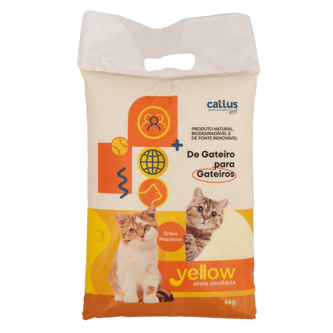 As areias sanitárias Yellow são fabricadas com matéria prima da indústria de alimentação humana, sem adição de produtos químicos e de perfumes artificiais.